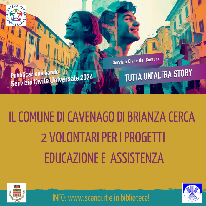 Anche quest'anno il comune di Cavenago di Brianza cerca 2 nuovi volontari per il Bando di Servizio Civile Universale relativo all'anno 2025.