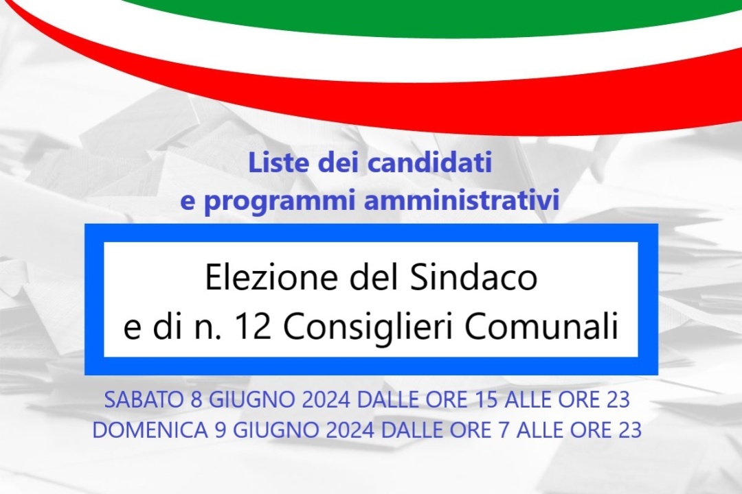 ELEZIONE DEL SINDACO E DEL CONSIGLIO COMUNALE Liste dei candidati e programmi amministrativi per l’elezione del sindaco e di n. 12 consiglieri comunali che avrà luogo sabato 8 giugno e domenica 9 giugno 2024