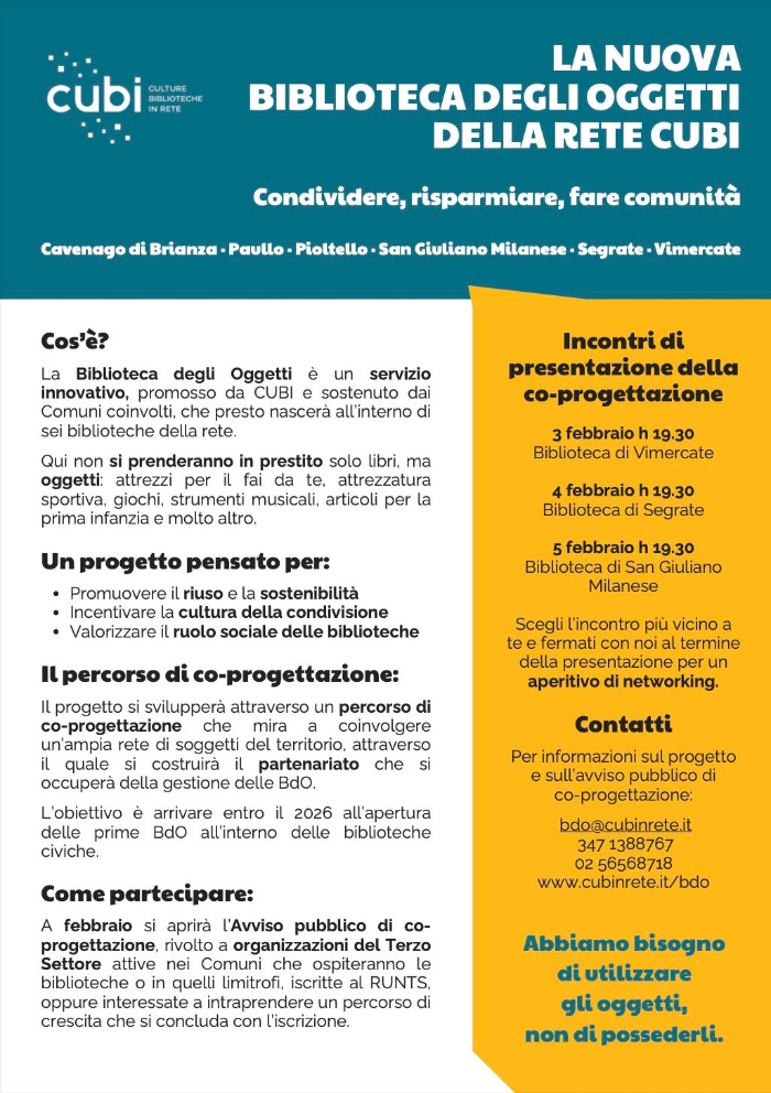 Ti aspettiamo agli incontri di presentazione dedicati alla fase di co-progettazione della Biblioteca degli Oggetti (la partecipazione è libera):