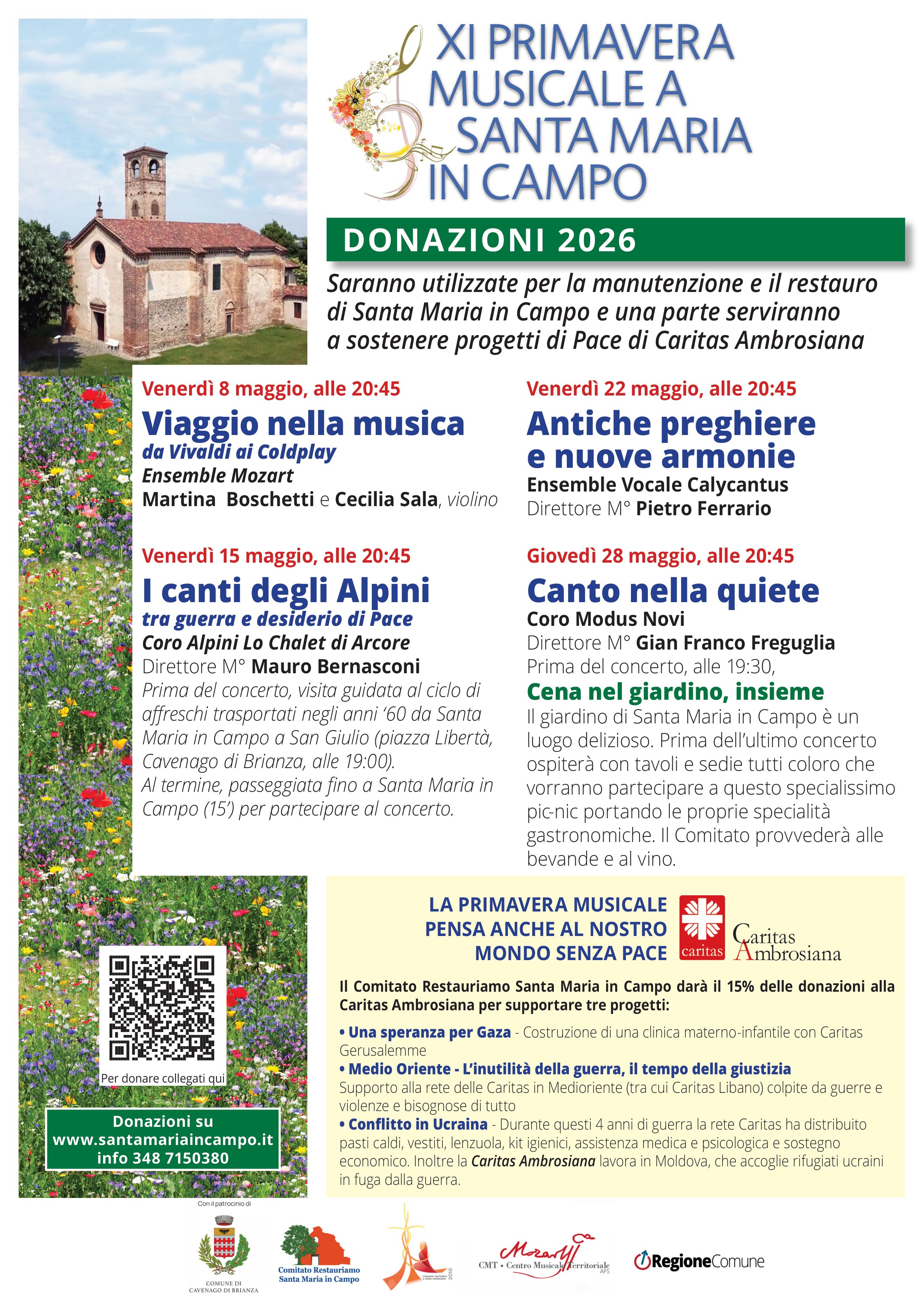Evento speciale: Alle ore 19:00, visita guidata al ciclo di affreschi trasportati negli anni '60 da Santa Maria in Campo a San Giulio (piazza Libertà, Cavenago di Brianza). Al termine, passeggiata di 15 minuti fino a Santa Maria in Campo per partecipare al concerto.