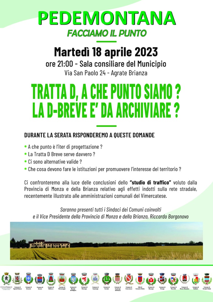 Ci confronteremo alla luce delle conclusioni dello “studio di traffico” voluto dalla Provincia di Monza e della Brianza relativo agli effetti indotti sulla rete stradale, recentemente illustrato alle amministrazioni comunali del vimercatese.