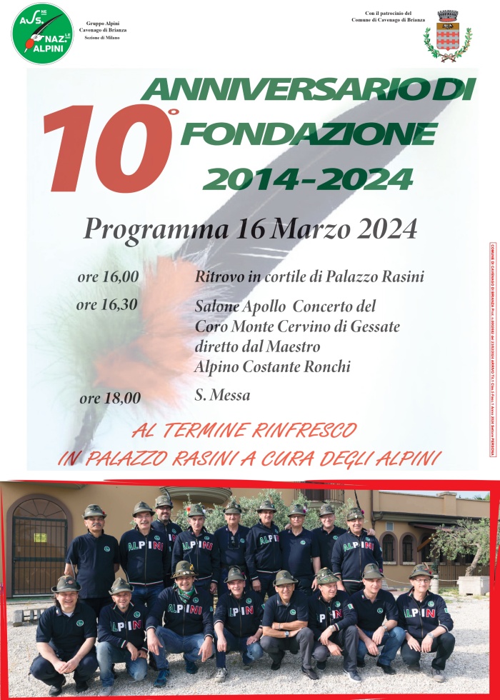 Il 16 Marzo 2024 il Gruppo alpini celebra il decennale della fondazione