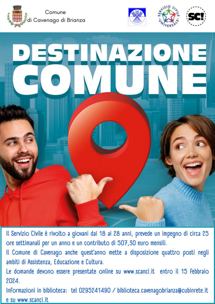 Anche quest'anno il comune di Cavenago di Brianza cerca 4 nuovi volontari per il Bando di Servizio Civile Universale relativo all'anno 2024.