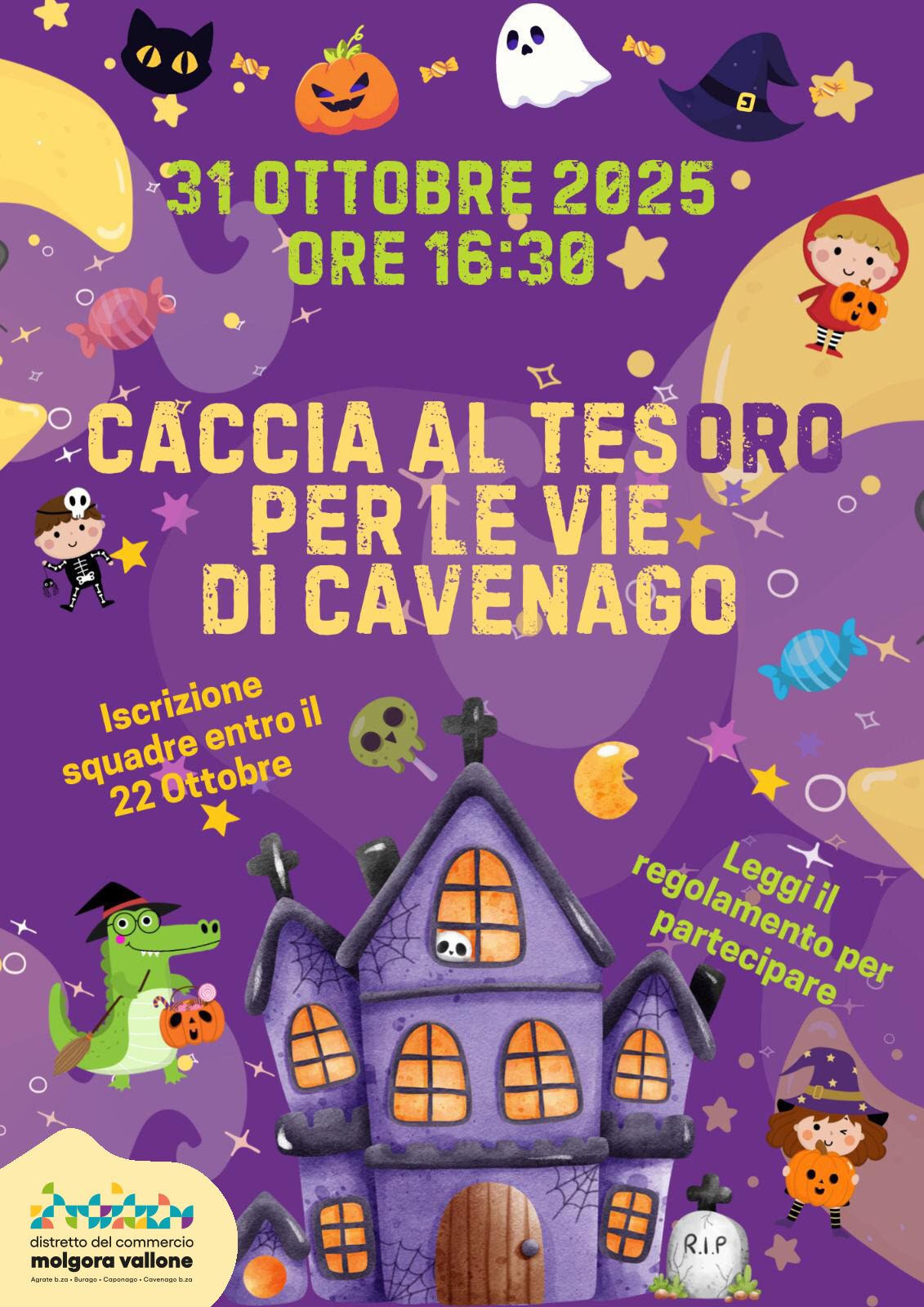 Il Distretto del Commercio “Molgora Vallone”, in collaborazione con i commercianti di Cavenago di Brianza, organizza una grande Caccia al Tesoro di Halloween per bambini e famiglie.