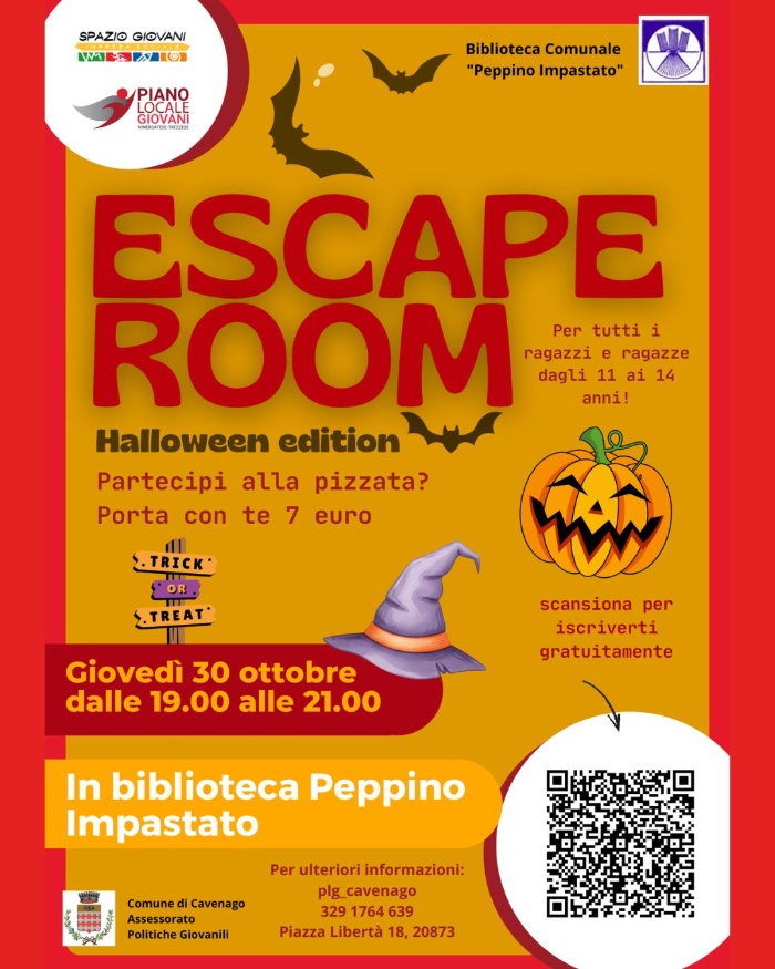 Il Comune di Cavenago di Brianza, in collaborazione con Spazio Giovani Vimercate e il Piano Locale Giovani, organizza un nuovo appuntamento speciale per Halloween dedicato ai più giovani!
