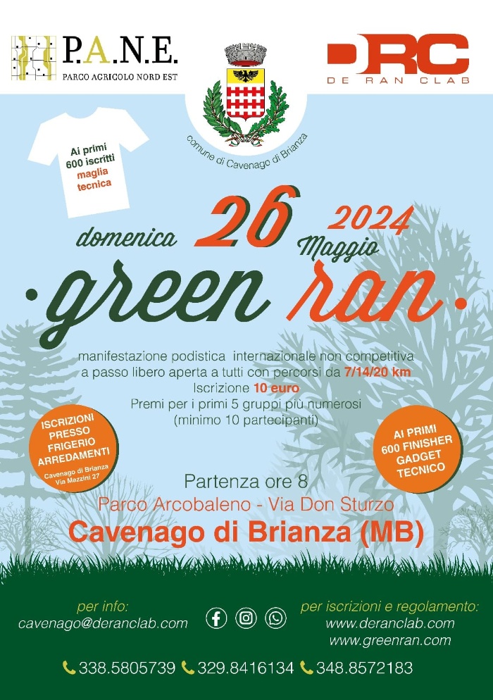 Da sabato 20/04 corri ad accaparrarti la nuova maglia e poi correre il 26/05 per ricevere il fantastico gadget tecnico RUN di GREEN RAN garantito per i primi 600 FINISHER!!!