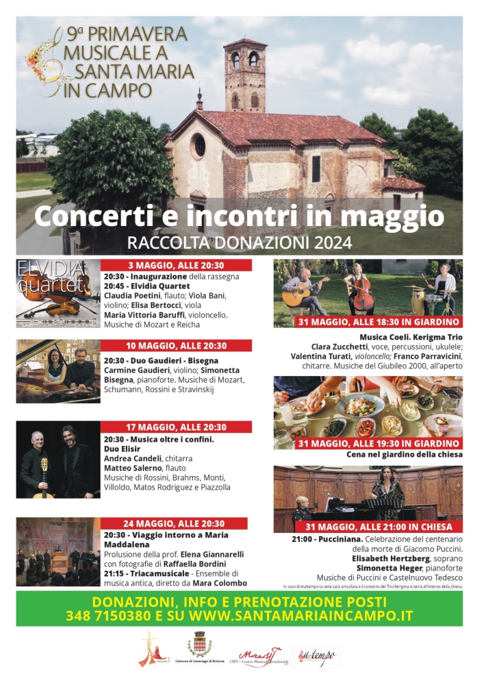 La IX Primavera musicale a Santa Maria in Campo si svolge in maggio, il mese Mariano, e vede numerosi e grandi musicisti avvicendarsi nella nostra chiesa per contribuire a mantenere vivo questo luogo di spiritualità e di arte.