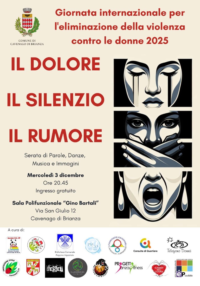 In occasione della Giornata internazionale per l’eliminazione della violenza contro le donne 2025, il Comune di Cavenago di Brianza promuove un appuntamento aperto alla cittadinanza dedicato alla riflessione e alla sensibilizzazione su un tema che continua a richiedere attenzione, responsabilità collettiva e impegno concreto.