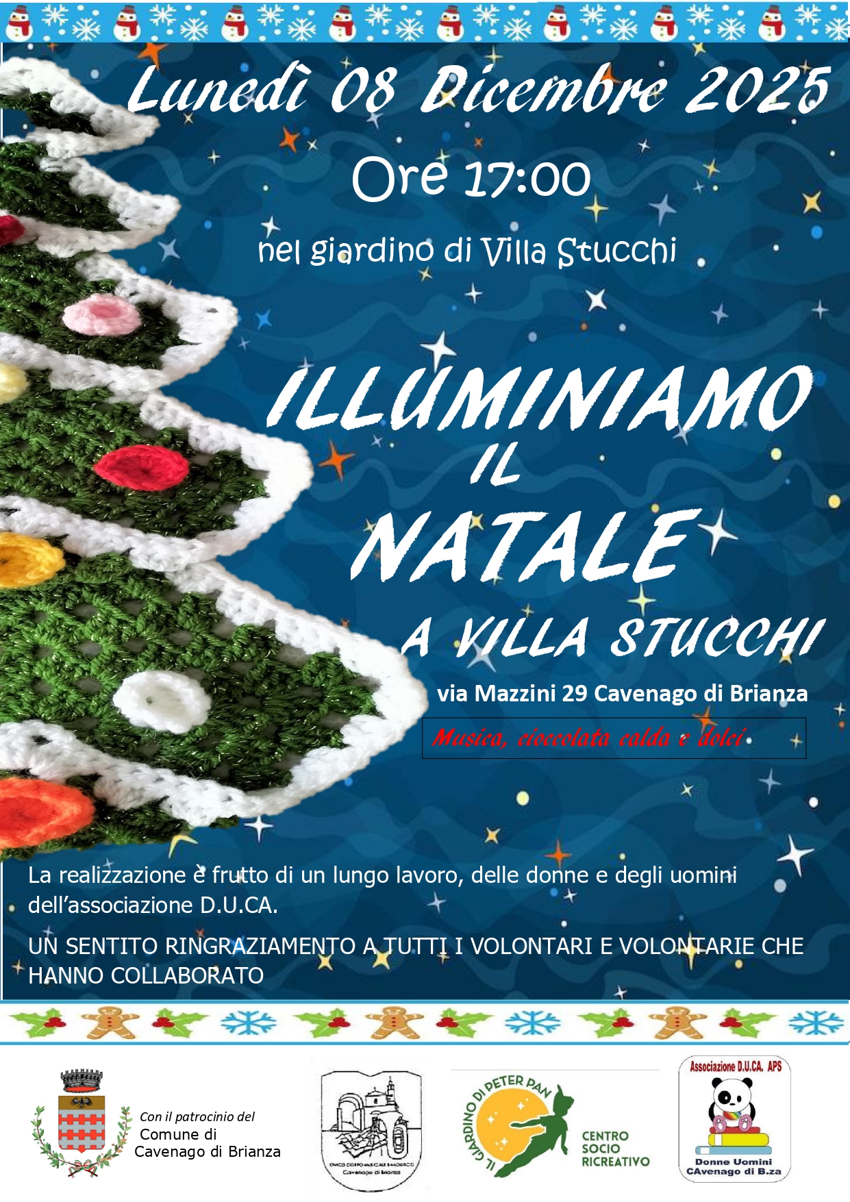 L'Associazione D.U.CA. APS invita tutti i cittadini a partecipare all’accensione delle luci natalizie nel suggestivo giardino di Villa Stucchi.