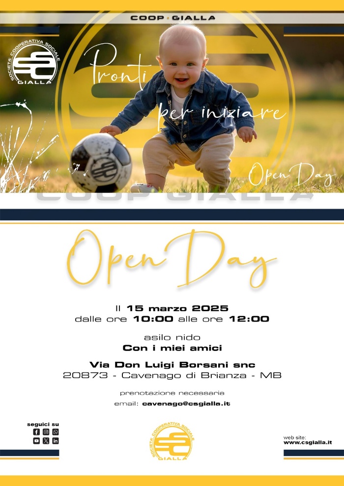 L'Asilo nido "con i miei amici" apre le porte il 15 marzo a partire dalle ore 10.00 previa prenotazione tramite mail : cavenago@csgialla.it per poter visitare gli spazi, conoscere le educatrici e il nostro modo di lavorare.