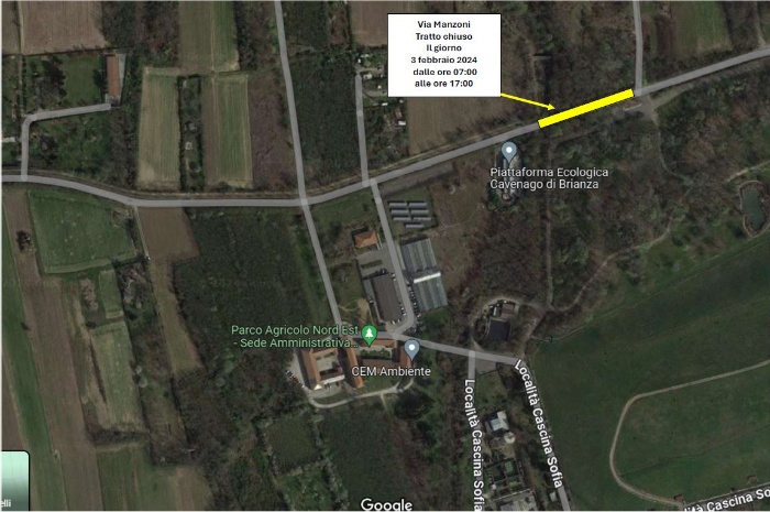 Disciplina viabilistica – divieto di transito – cavenago di brianza – via manzoni in data 03 febraio 2024 dalle ore 07:00 alle ore 17:00.