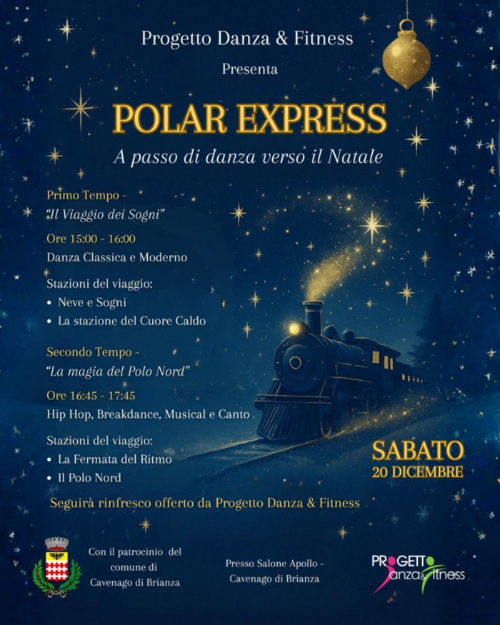 Progetto Danza & Fitness, con il patrocinio del Comune di Cavenago di Brianza, presenta lo spettacolo “Polar Express – A passo di danza verso il Natale”, un viaggio emozionante tra danza, musica e fantasia.
