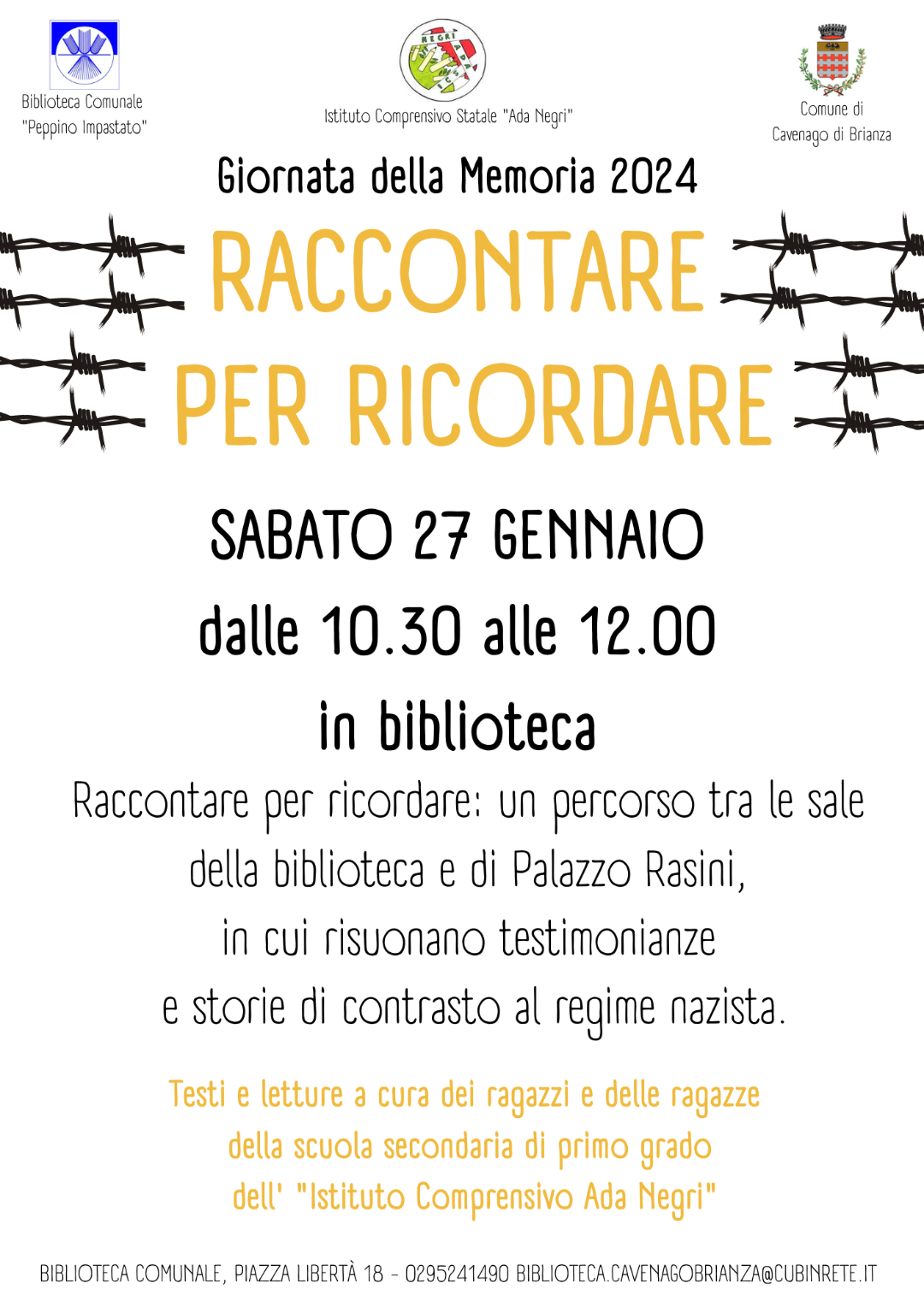 Sabato 27 Gennaio dalle ore 10.00 alle ore 12.00 - Biblioteca Comunale