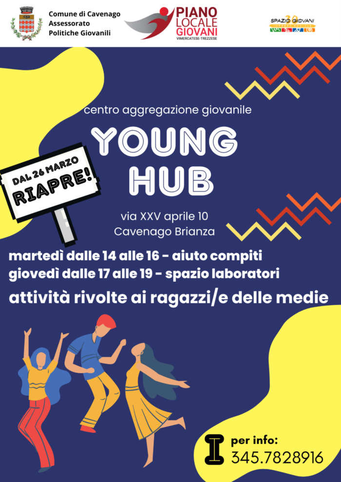 Young Hub è uno spazio promosso dal Comune di Cavenago di Brianza in collaborazione con Spazio Giovani Impresa Sociale.