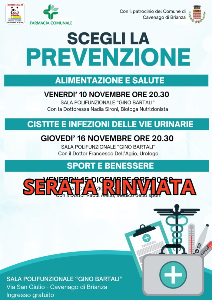Tre serate organizzate dall'Associazione D.U.Ca. e dalla farmacia comunale sul tema della prevenzione