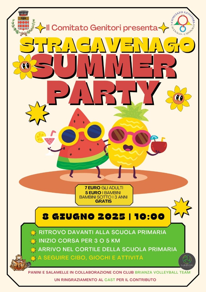 l Comune di Cavenago di Brianza, con il patrocinio concesso all’iniziativa, è lieto di invitare tutta la cittadinanza alla nuova edizione della Stracavenago Summer Party, la manifestazione estiva promossa dal Comitato Genitori dell’Istituto Comprensivo Ada Negri.
