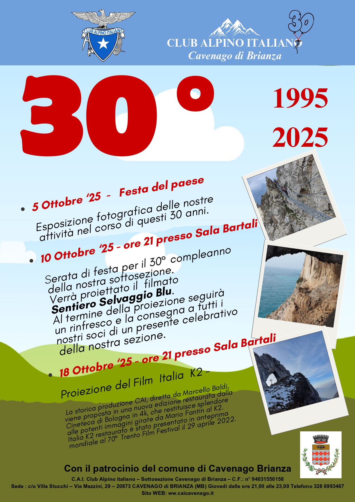 Il Club Alpino Italiano – Sottosezione di Cavenago di Brianza celebra quest’anno un traguardo importante: il 30° anniversario dalla fondazione (1995–2025).
