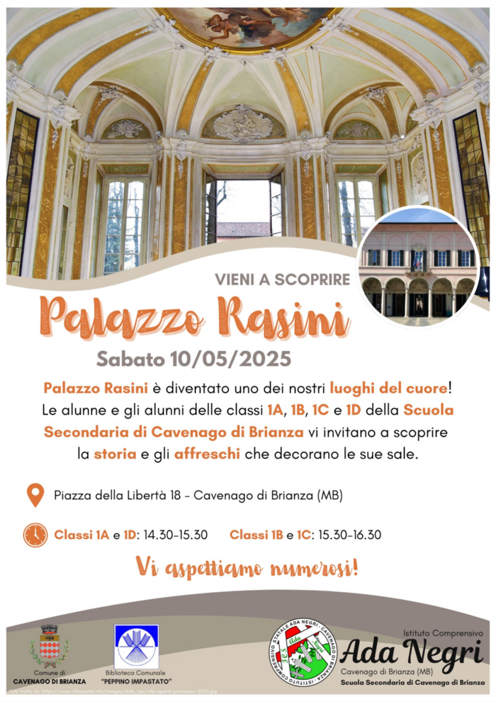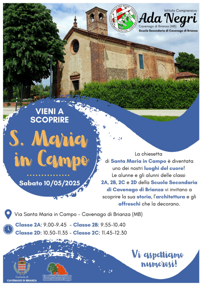 Gli alunni e le alunne delle prime e seconde classi della scuola secondaria dell'Istituto Comprensivo "Ada Negri" invitano tutti e tutte a visitare la chiesa di Santa Maria in Campo e le sale di Palazzo Rasini sabato 10 maggio
