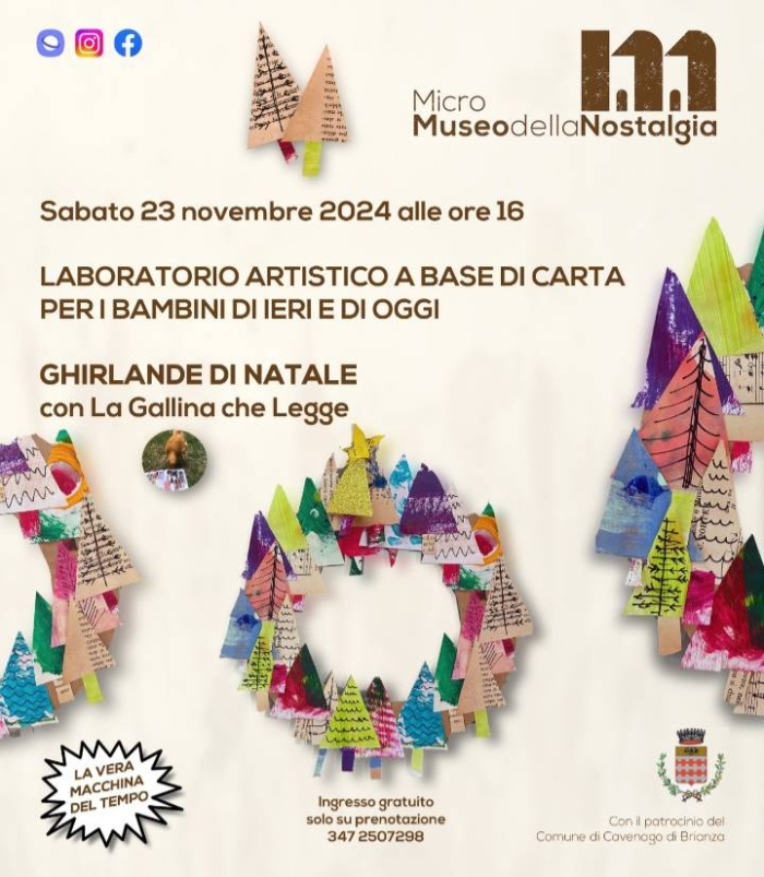 Sabato 23 novembre alle ore 16 il Museo avrà il piacere di ospitare @lagallinachelegge per un laboratorio artistico dedicato ai bambini di ieri e di oggi: Ghirlande di Natale.